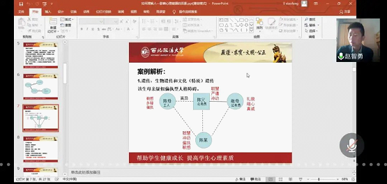 本次系列讲座采用“腾讯会议”,共分三场,累计共有学生800余人次参加了系列讲座。4月23日,tyc33455cc太阳成集团教师、国家二级心理咨询师张美云老师主讲《女大学生的心理健康》,她从心理健康是幸福的保障、女性心理生理特征和女大学生常见的心理问题三个方面进行了分析;4月27日,tyc33455cc太阳成集团团总支书记刘佳老师主讲《我的情绪我做主》,她从“什么是情绪”切入,最终落脚于如何做好情绪管理,增加大学生正能量,与同学们分享了情绪管理的误区和管理情绪的方法;5月13日,校学生心理健康教育中心主任赵智勇老师主讲《如何理解人--影响心理健康的因素》,他介绍了一个人性格、心理形成的影响因素,鼓励同学们正确认识自我,正确认识自己的心理问题。三场讲座通俗易懂、深入浅出,教会了同学们自我调适、缓解焦虑的小方法,同学们纷纷表示受益匪浅。