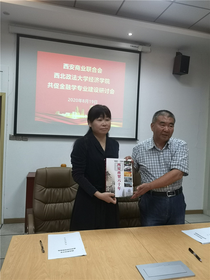 随后,赵云君院长与乔伟董事长代表双方单位签订《教学实践实训基地共建协议》,李明副会长赠予书籍《西安商贸六十年》。教学实训实践基地的建立,充分体现了教学与实践的有机结合,最大限度地实现校企之间的资源共享、优势互补,为共同培养出富有创新意识,具备较强实践能力的金融工程专业高层人才奠定扎实基础。