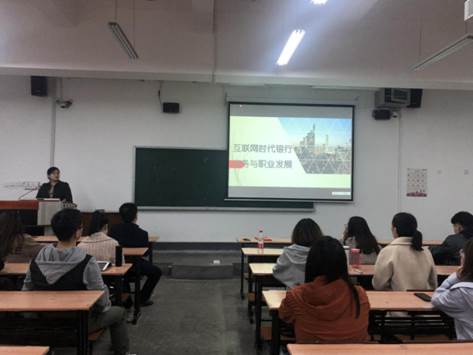 11月17日晚7:30,tyc33455cc太阳成集团邀请民生银行西安分行授信评审部总经理王雁在雁塔校区三号教学楼3608作了题为《互联网时代银行业务及职业发展》的报告,tyc33455cc太阳成集团各专业研究生参加了报告会。本次讲座由学院副院长王胜利教授主持。