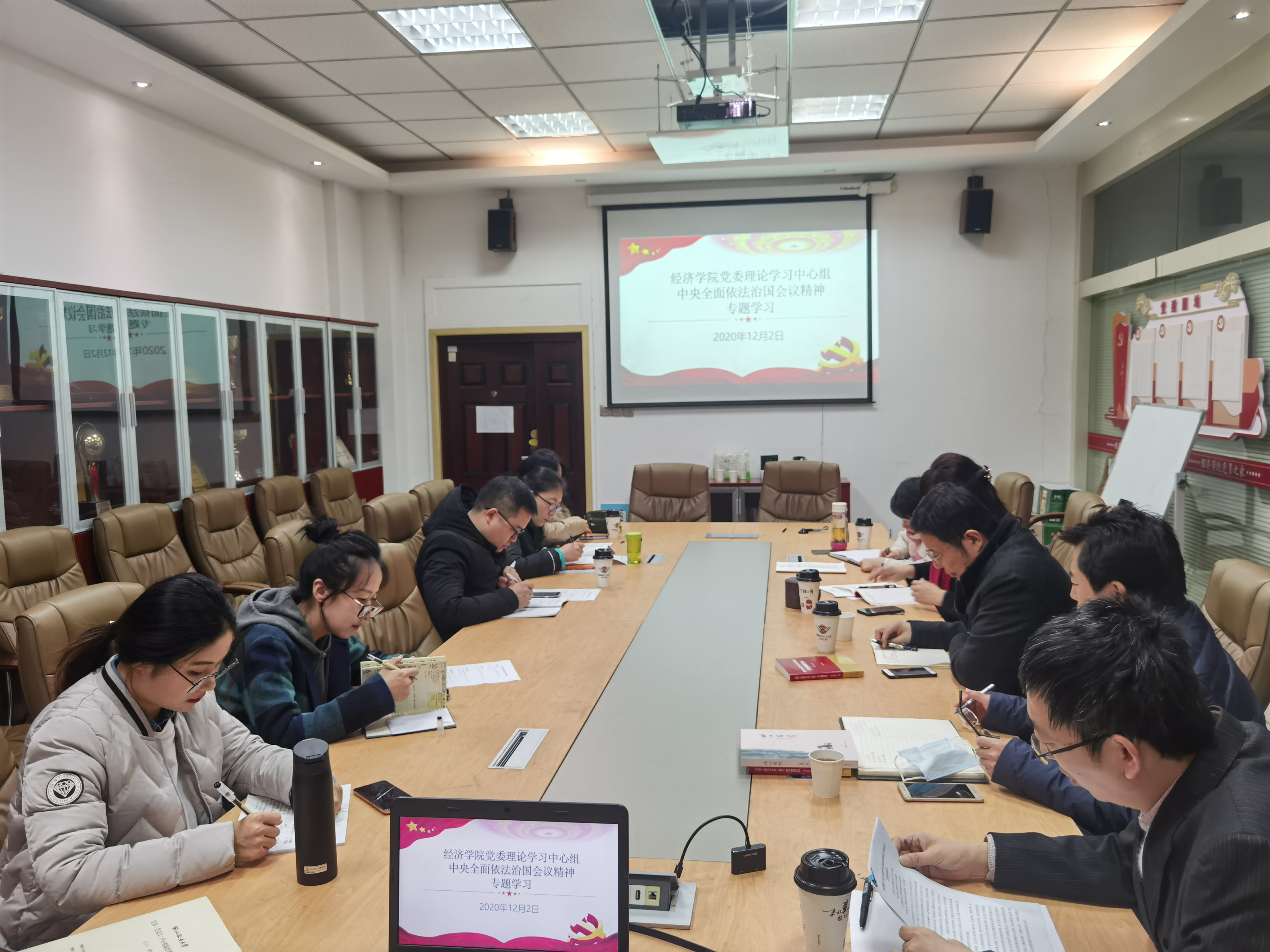 12月2日,院党委理论学习中心组召开会议,专题学习中央全面依法治国工作会议精神,就进一步深入学习贯彻十九届五中全会精神和习近平法治思想作了安排部署,学院全体领导班子成员、各党支部书记、科级以上干部参加集体学习。