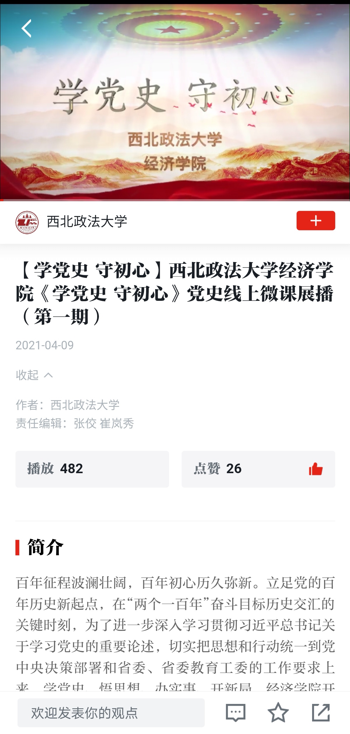 薪火相传、生生不息,与党同心、与时代同行,我们将传承红色基因,从党史学习教育中汲取前行的智慧与力量,以昂扬姿态奋力开启高水平大学建设新征程,以优异成绩迎接中国共产党成立100周年。