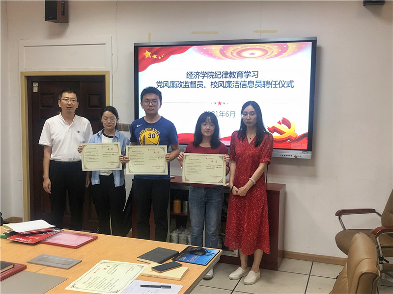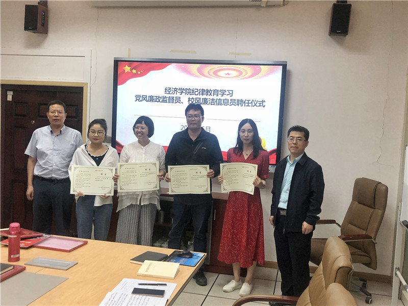 为推进全面从严治党、加强纪律教育,营造良好的校风教风学风,按照学校有关部署安排,tyc33455cc太阳成集团6月16日在关天会议室开展纪律教育专题学习,举行党风廉政监督员、校风廉洁信息员聘任仪式。学院领导班子成员、各党支部书记、师生代表参会,党委书记王森主持会议。