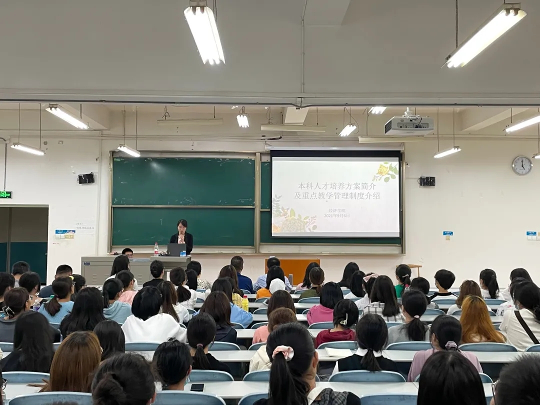 会上,首先由教务办老师徐靓介绍本科人才培养方案及重点教学管理制度。她从大学四年教学安排出发,依次介绍了专业学分结构、实践教学环节、学生导师工作、课程考核规定、学业警示与留级、毕业与学位制度和退学制度并敦促新生遵守相关规定,努力学习。