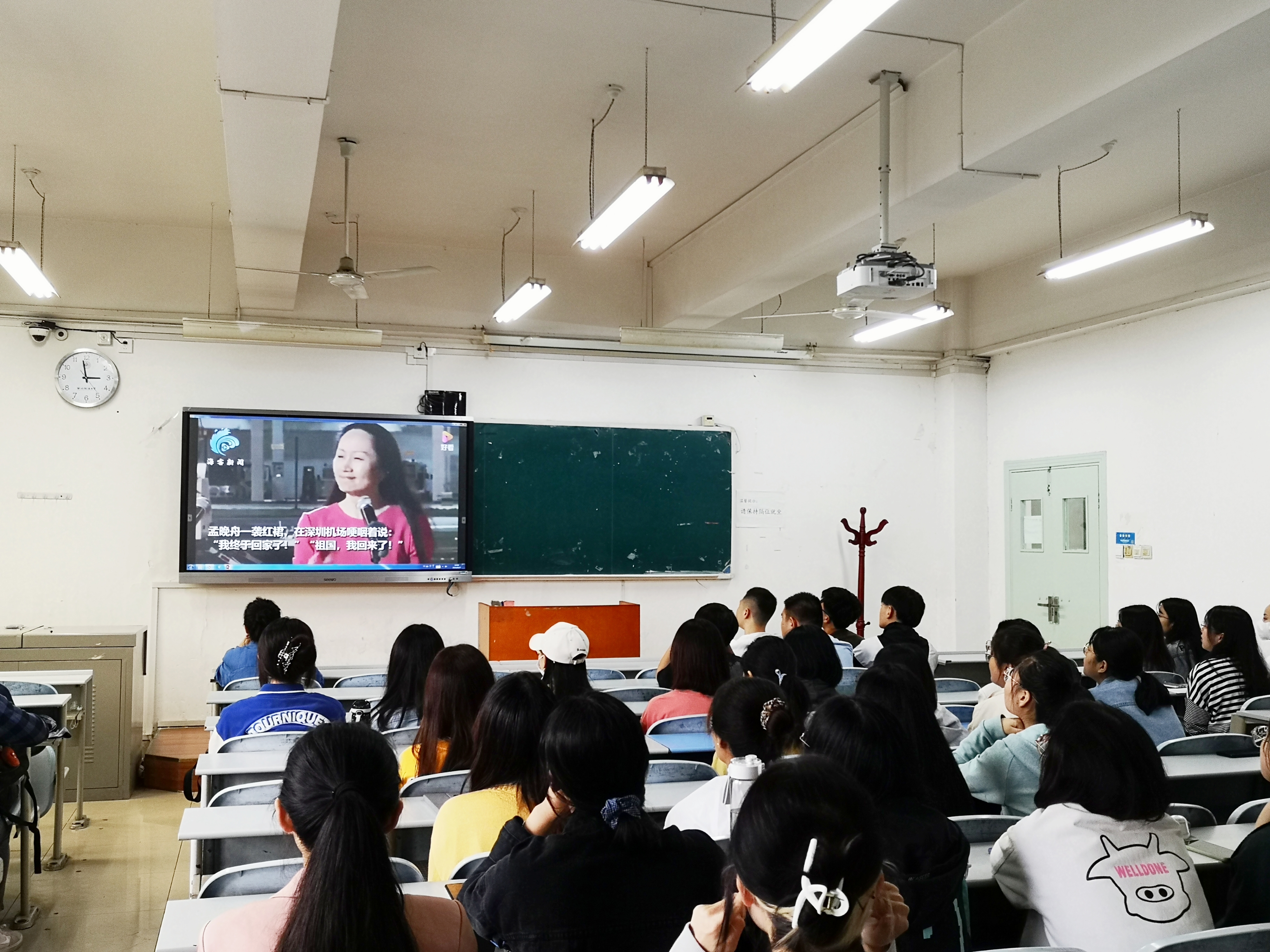 支部书记刘佳在总结时,提出希望同学们认真学习孟晚舟女士在逆境中坚持正义、不卑不亢的高尚道德情操,学习华为公司面对美国的极限施压和技术封锁依然屹立不倒的民族企业精神,从孟晚舟的事件中深刻感悟中国共产党“人民至上”的执政理念,不断增强为人民服务的意识和本领。