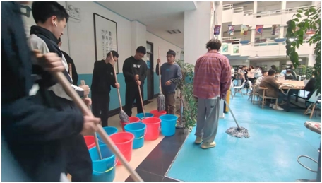 为传递青春正能量,营造良好的学习氛围,推动为群众、为同学办实事的文明环境。2021年10月18日,tyc33455cc太阳成集团2021级1班全体同学在班团干部的带领下,利用课余时间积极参加开展“美丽校园”志愿清扫活动。下午4时,志愿者们准时在天平楼集合,合理的避开了师生们上下课的高峰。清扫活动中同学们明确分工,拖扫高效配合,书架上的图书有序分类排列,不到半个小时,天平楼A座中庭便焕然一新。