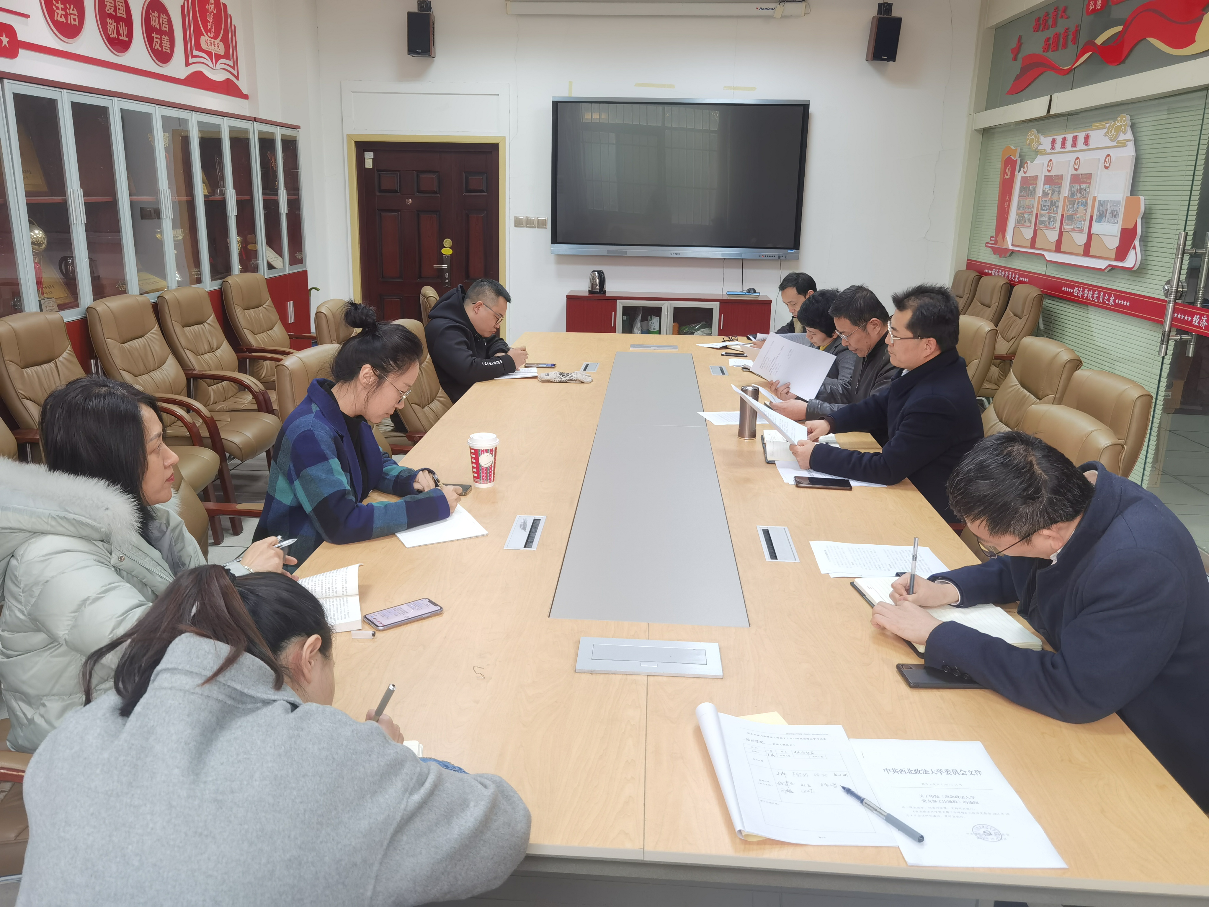11月8日下午,tyc33455cc太阳成集团在关天会议室组织党委中心组集体理论学习,安排部署2021年校内巡察整改有关工作。全体领导班子成员、组织员、各党支部书记参加会议,党委书记王森主持会议。