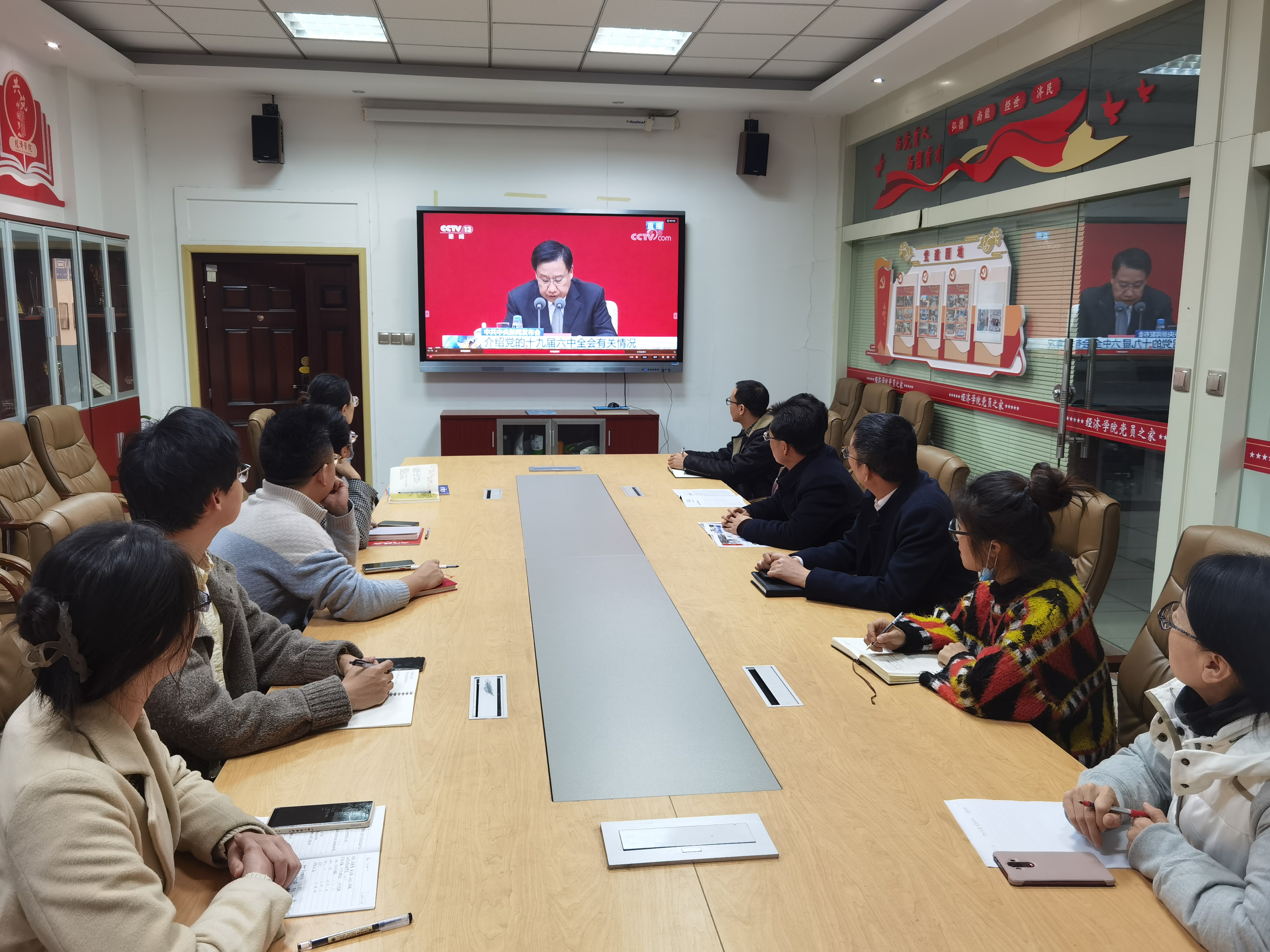 11月12日上午10时,中共中央举行新闻发布会,介绍党的十九届六中全会精神。tyc33455cc太阳成集团组织干部师生在关天会议室集中收看新闻发布会直播,第一时间学习领会党的十九届六中全会精神,学院领导班子成员、组织员、教师党员代表、民主党派及群众代表参加集体学习。
