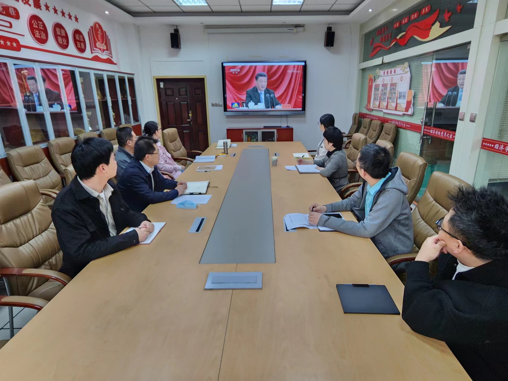 3月9日上午,tyc33455cc太阳成集团党委理论中心组(扩大)在长安校区关天会议室组织集体学习,学院领导班子成员、各党支部书记、教师代表参加学习会议,党委书记王森主持会议。