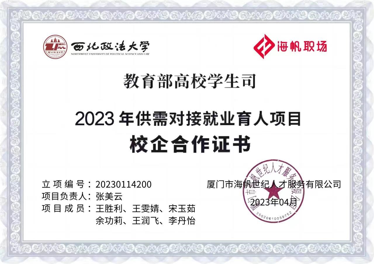 4月6日,教育部高校学生司印发《关于公布第二期供需对接就业育人项目立项名单的通知》(教学司函〔2023〕6号),tyc33455cc太阳成集团张美云老师申报主持的一项供需对接就业育人项目(就业实习基地类别)获批立项,合作企业为厦门市海帆世纪人才服务有限公司。