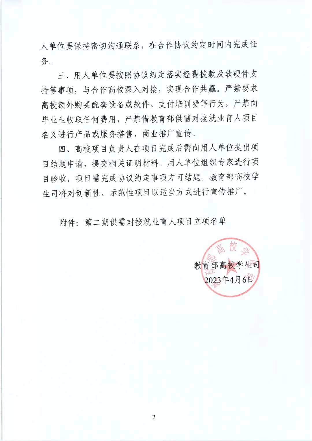 据悉,教育部供需对接就业项目是贯彻党的二十大精神、全面落实党中央、国务院对高校毕业生就业创业工作决策部署、深化产教融合与校企合作、推动人才培养与就业工作有机联动、推动人才供需有效对接的重要举措。