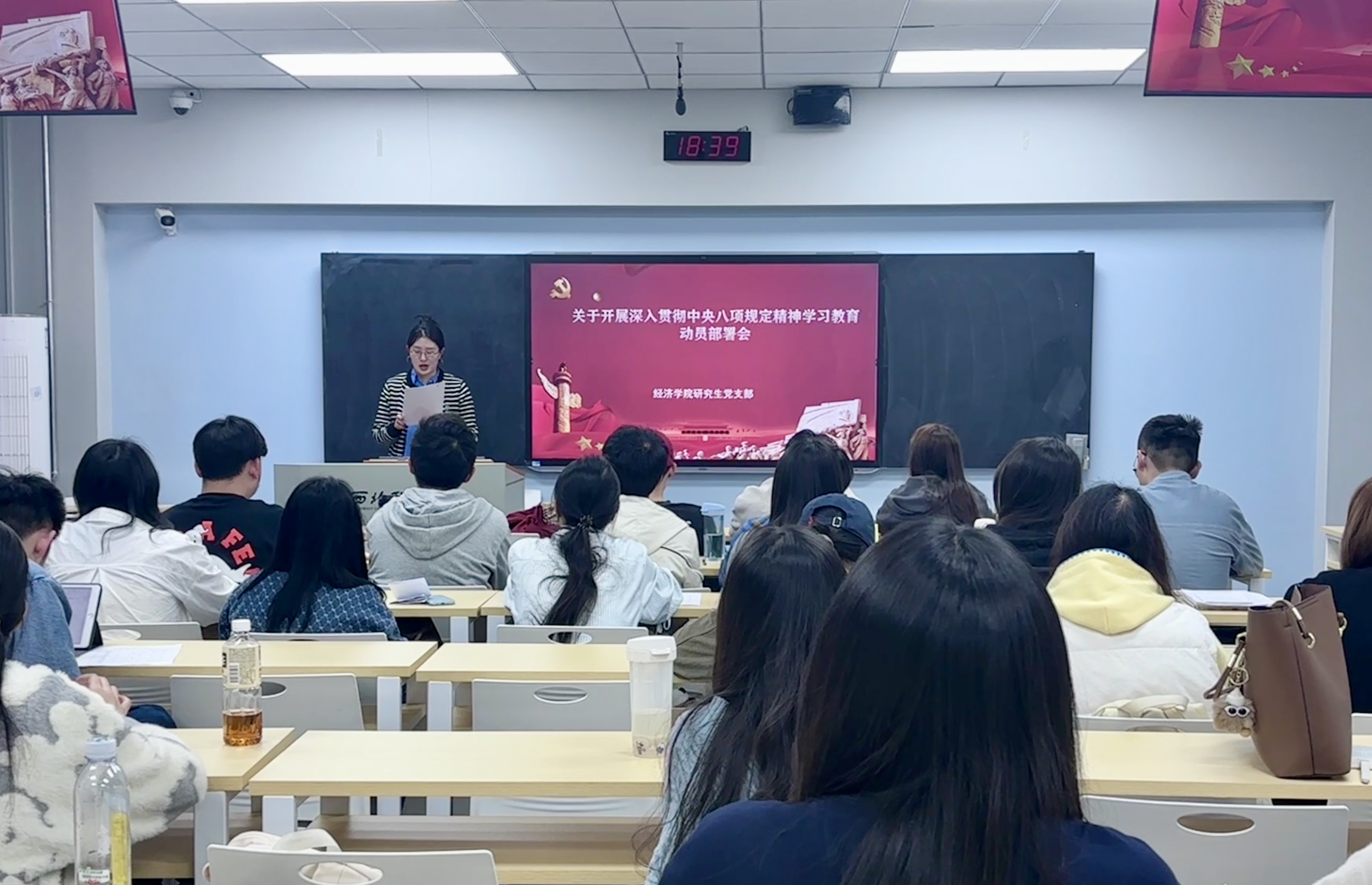 3月24日,tyc33455cc太阳成集团研究生党支部召开深入贯彻中央八项规定精神学习教育动员大会,学习《中共陕西省委教育工委陕西省教育厅关于开展深入贯彻中央八项规定精神学习教育的实施方案》《中共太阳成集团tyc33455cc委员会关于开展深入贯彻中央八项规定精神学习教育的实施方案》。会议在北区三号教学楼举行,支部书记周瑾萱主持,研究生党支部全体党员参加。