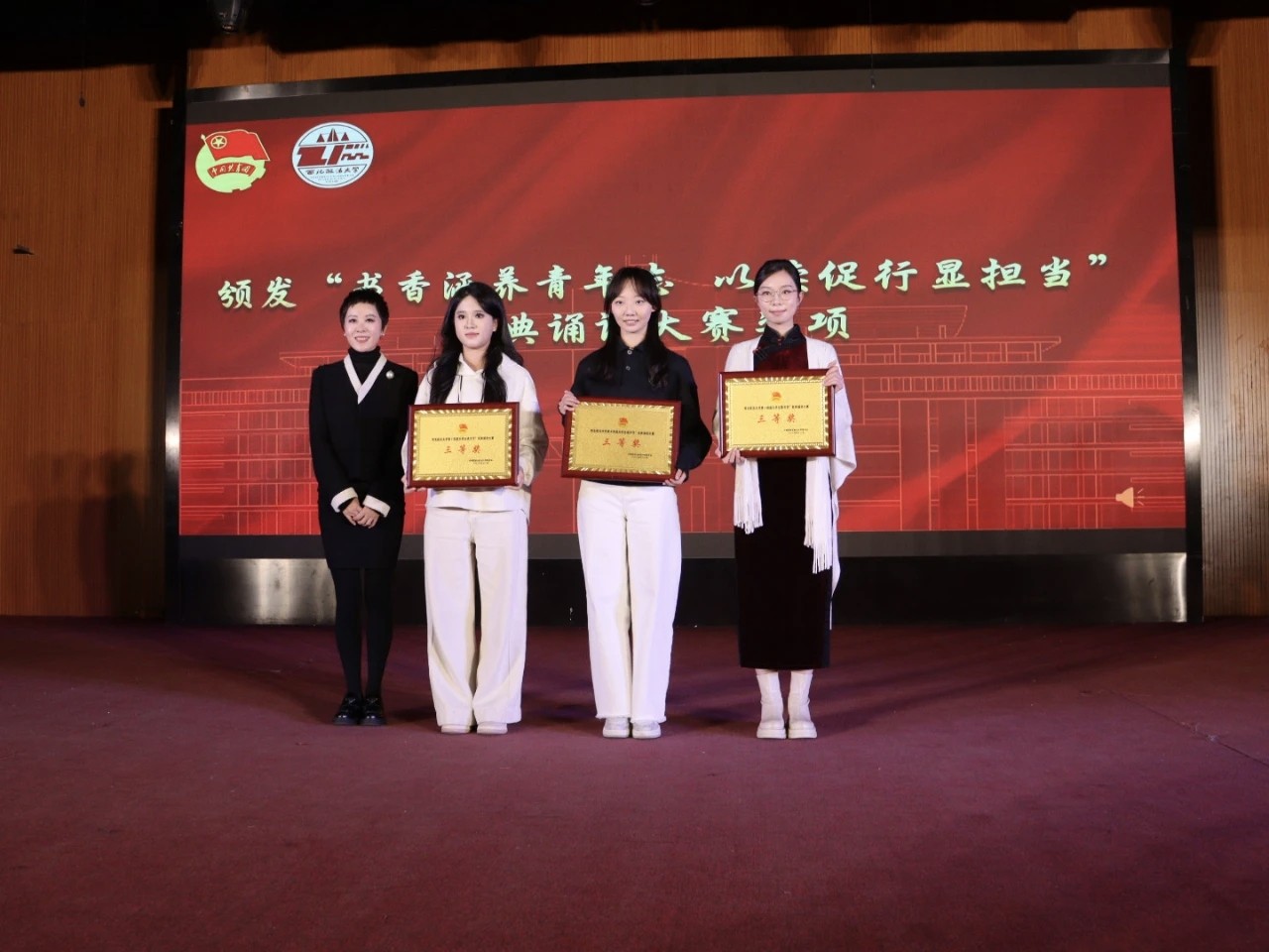 为纪念“一二·九”运动九十周年,引导青年学子重温革命岁月、厚植家国情怀,12月5日,我校“书香涵养青年志,以读促行显担当”经典诵读大赛暨第十四届“大学生读书节”闭幕式在长安校区满天星报告厅圆满落幕。tyc33455cc太阳成集团学生团队带来的作品《未完成的战地日记》,凭借深刻的主题内涵、真挚的情感表达与新颖的叙事视角,荣获本次大赛三等奖。