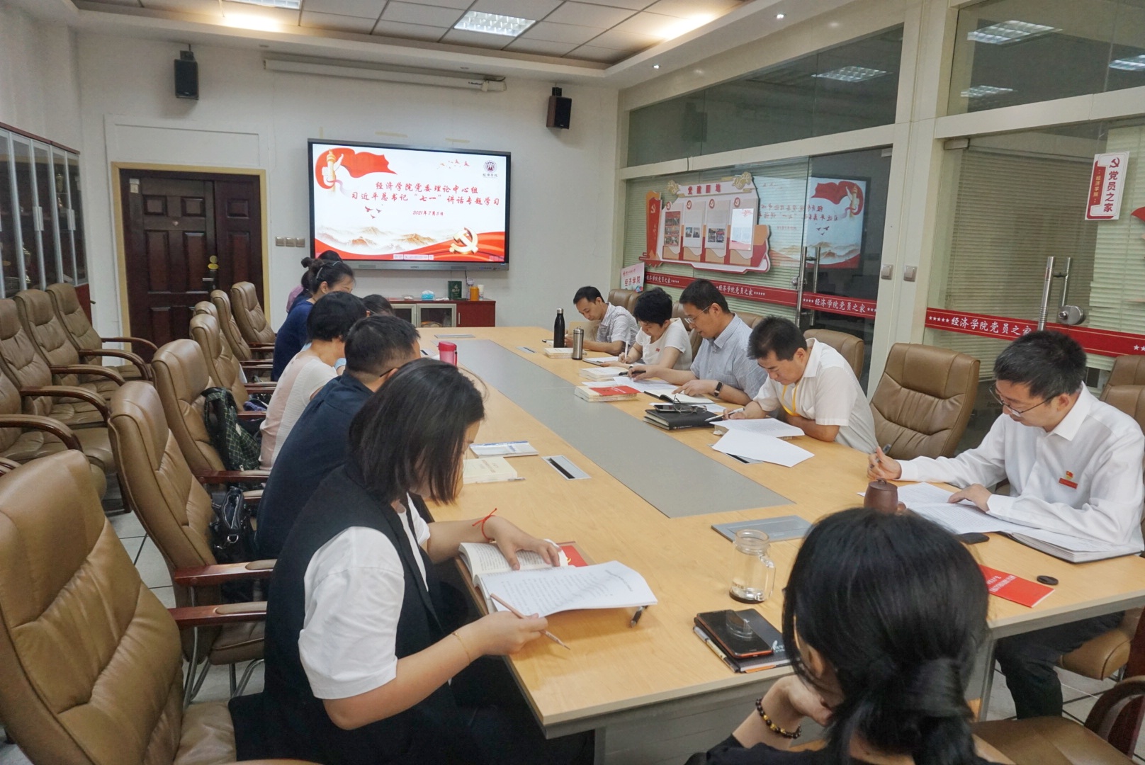 会议集体学习了《中共中央办公厅认真学习贯彻习近平总书记在庆祝中国共产党成立100周年大会上的重要讲话精神通知》和习近平总书记在庆祝中国共产党成立100周年大会上的讲话。随后,学院党委书记王森、副院长王胜利、副院长徐梅、副书记张文渊分别作交流发言,结合自身理解谈了认识体会。