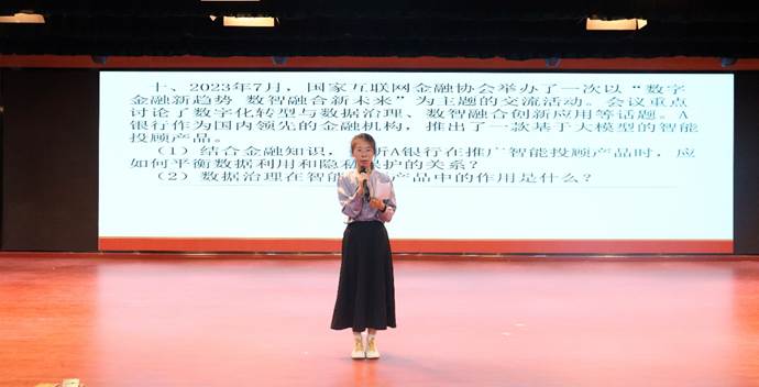 第六届“郑商所杯”模拟金融交易大赛校赛颁奖典礼后,长安期货副总经理郭苏娅女士进行致辞。她指出,随着时代的进步和社会的发展,金融作为现代经济的核心,已经渗透到我们生活的方方面面。作为国家的未来和希望,大学生不仅需要在专业领域内有深厚的学术积累,更需要具备全面而丰富的金融知识,以应对未来职业生涯中可能遇到的金融挑战。