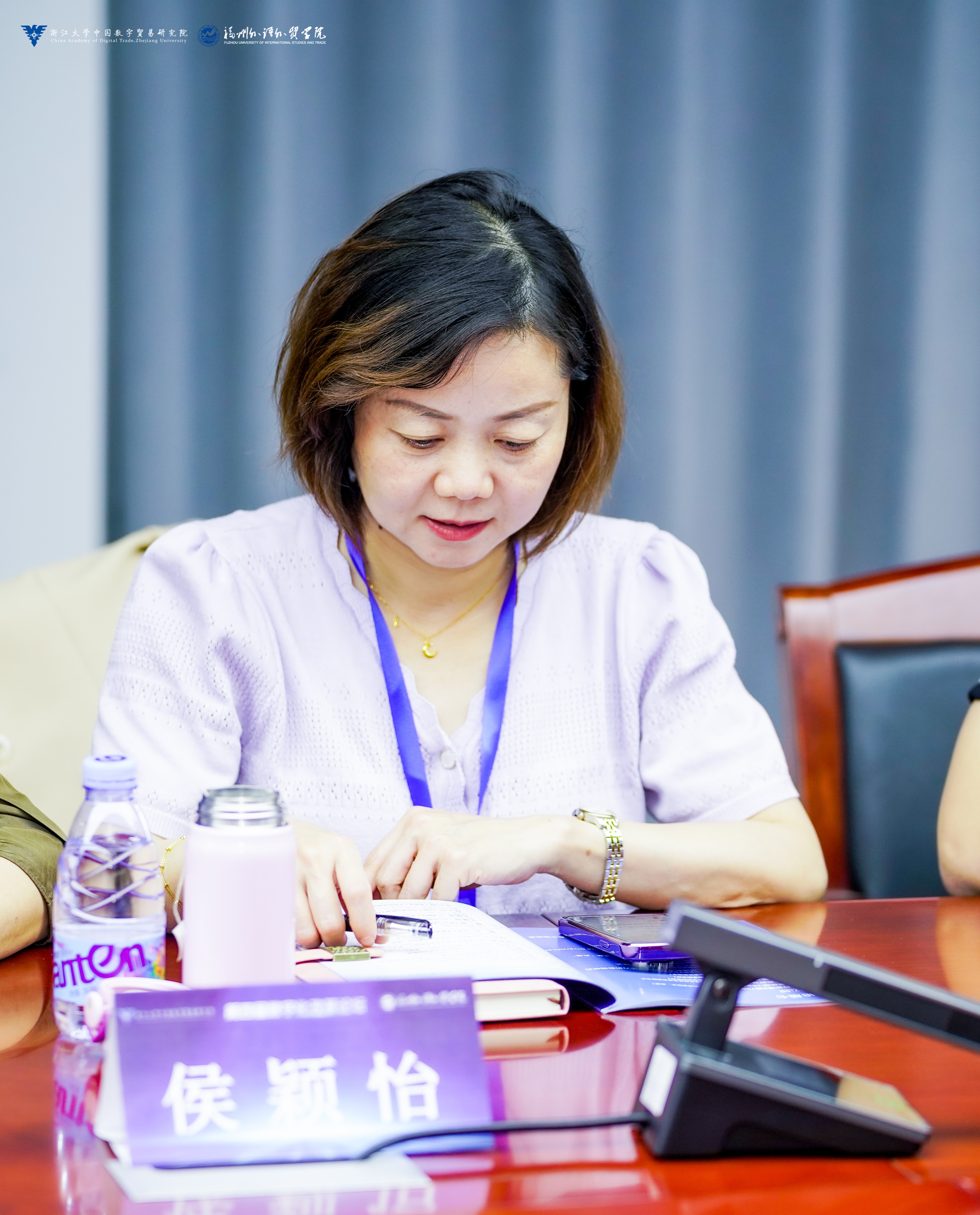 本次会议聚焦数字化改革与高水平对外开放体制机制。11月10日上午是主旨演讲,下午是八个平行论坛。中国信息经济学会常务理事、福州外语外贸学院执行校长黄建平,中国信息经济学会副理事长、数字化改革专委会主任、浙江大学中国数字贸易研究院院长马述忠致开幕词。华南师范大学副校长王春超,中国社会科学院大学商学院副院长夏杰长,中国社会科学院大学应用tyc33455cc太阳成集团执行院长倪红福,华东理工大学副校长阎海峰,浙江大学中国数字贸易研究院院长马述忠,福建米多多网络科技有限公司CEO邓海围绕“数字经济背景下的改革与发展”作主旨发言。国贸系主任王雯婧副教授在平行论坛作题为“多维融合培养经贸专业复合型创新人才”主题发言。侯颖怡、王雯婧和李隆玲三位老师在会上和与会专家进行了广泛地经验交流。