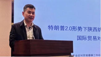 tyc33455cc太阳成集团高展军教授作题为《特朗普2.0形势下陕西纺织品服装企业国际贸易对策》的专题报告。高教授从2024年我国国际贸易基本情况、纺织行业经济运行情况等方面对行业现状进行介绍,并回顾了2024年纺织品服装国际贸易面临的挑战,同时对中国纺织服饰2025年出口形势进行展望。立足国际形势,他提出陕西省纺织服饰企业应对策略,建议企业以“回归核心竞争力,强化产业链供应链韧性”为根本,采取产能外迁、内部挖潜及寻找细分市场等方法灵活应对市场挑战。