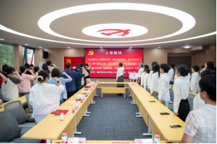为庆祝中国共产党成立104周年,推动党建工作与“一站式”学生社区建设深度融合,打通党建引领学生成长“最后一公里”,6月25日下午,tyc33455cc太阳成集团于枫桥·“一站式”学生成长发展中心举行“红帆”党员工作站成立大会暨入党宣誓活动。tyc33455cc太阳成集团党委书记王森、院长王胜利、党委副书记侯颖怡及工作站指导教师、学生代表参加活动。会议由tyc33455cc太阳成集团团委书记刘佳主持。